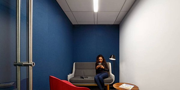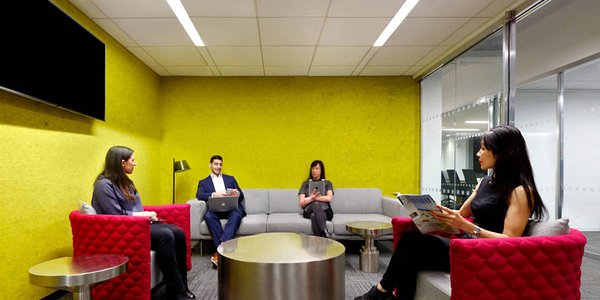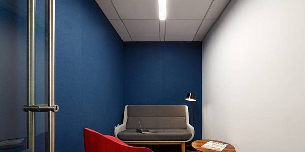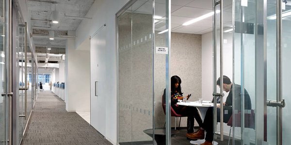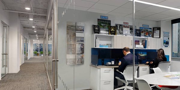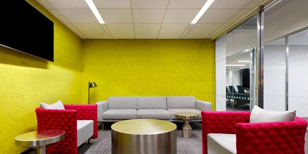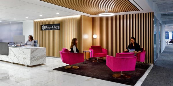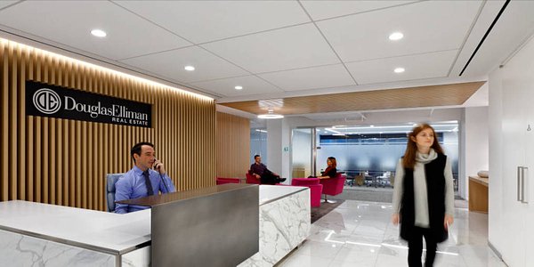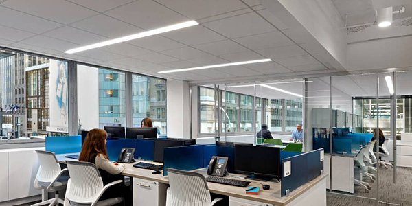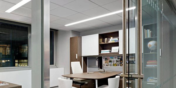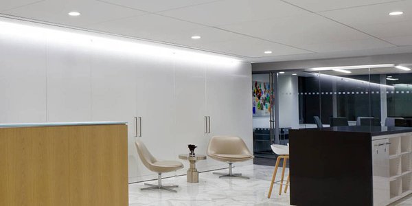 The Douglas Elliman offices in New York City features the WPPL-2 perimeter wall grazer and, Profile (PRFL-44-D) recessed linear.