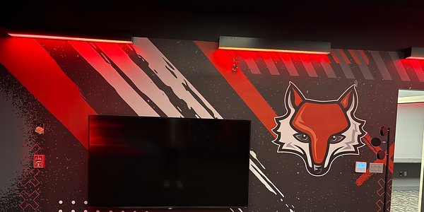 Perimeter surfaces are illuminated by PRFL-44 wall-mounted luminaires, introducing dynamic RGBW illumination that enhances spatial depth and enables programmable color expression. The result is a cohesive lighting composition that balances clarity, contrast, and adaptability - supporting both focused work and an immersive visual experience.