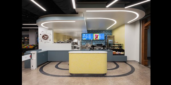 In the renovation of the Sunshine Marketplace at the University of California, San Diego, Day-O-Lite’s PRFL-44-D suspended linear and ARCL-44-D-TRL custom curved recessed luminaires were selected to deliver both visual performance and seamless architectural integration.